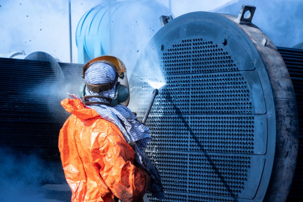 Pressure washing by hot water: oil and grease are dislodged more quickly and can be removed more easily. The emulsion of oil and grease in hot water is accelerated. In practice, higher water temperatures can reduce cleaning time by up to 35% – with significantly better results.